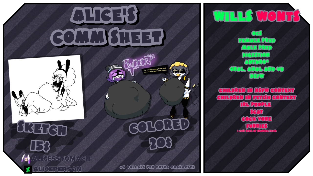 Made the infamous Friday Night Funkin' Vore Mod VS Alice. Also planning to branch out. Runs Gutfunkers.
